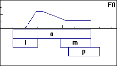 Fundamental frequency is dealt with in YorkTalk/IPOX by a rather simplistic model, in which a linear fall is generated for each foot: